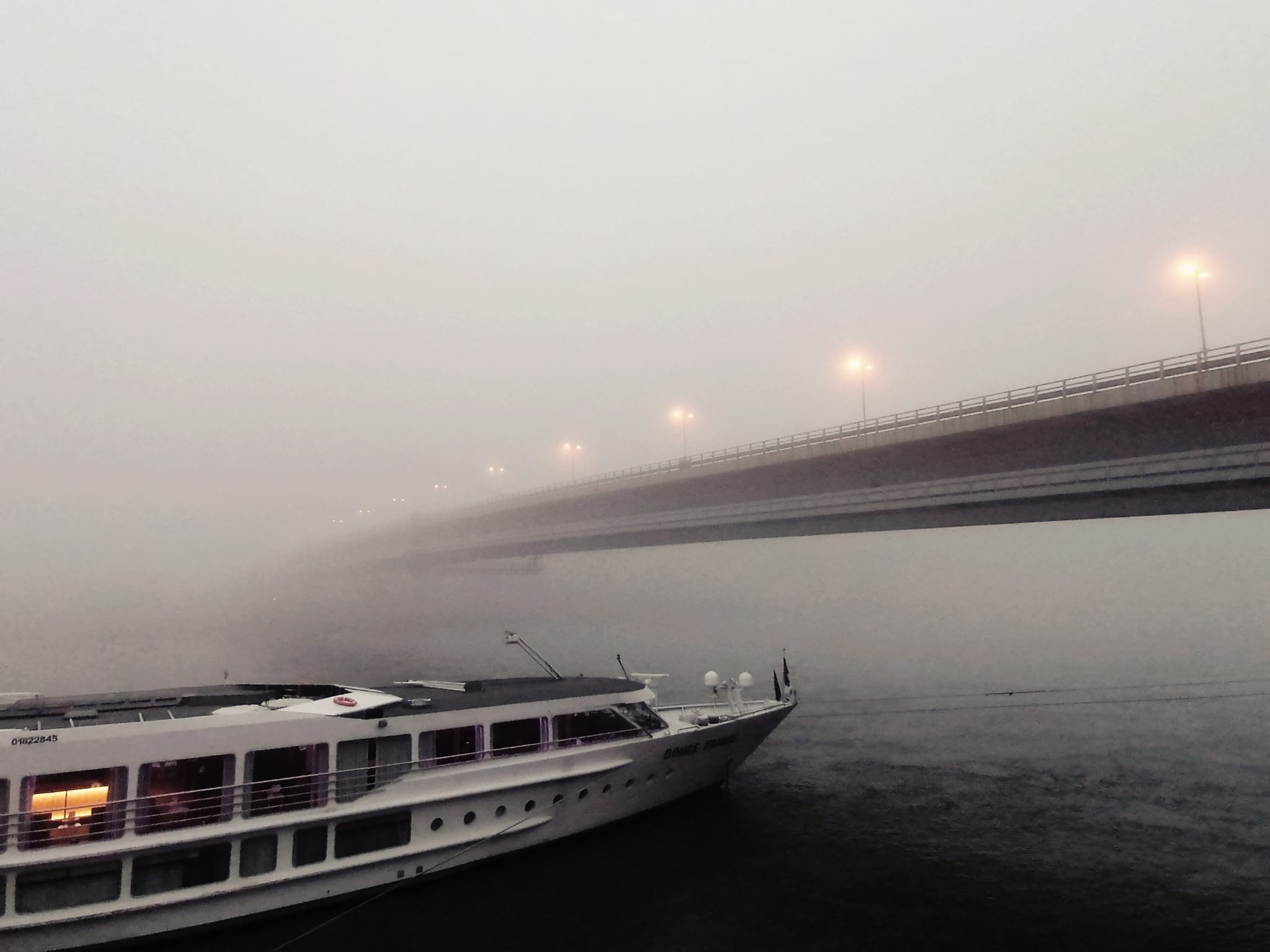 A loď s jediným turistom na palube sa plaví hmlou do ďalšieho prístavu podľa svojho pevného itineráru, držiac kurz od svetielka k svetielku, ktoré lámu tmu a hmlu z okraja brehu. Postačil len tento jeden, hoci v čase neľúbivom, dovolenkovať sa mu zachcelo, tak na plavbu v decembri sa vydal. Nedopriať si ešte v starom roku či nevyčerpať dovolenku? To sa nenosí!